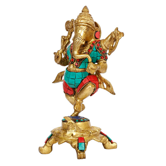 Brass Dancing Ganesha Idol Ganesha Statue Ganpati Murti for Home Entrance Decor Height 8 Inch