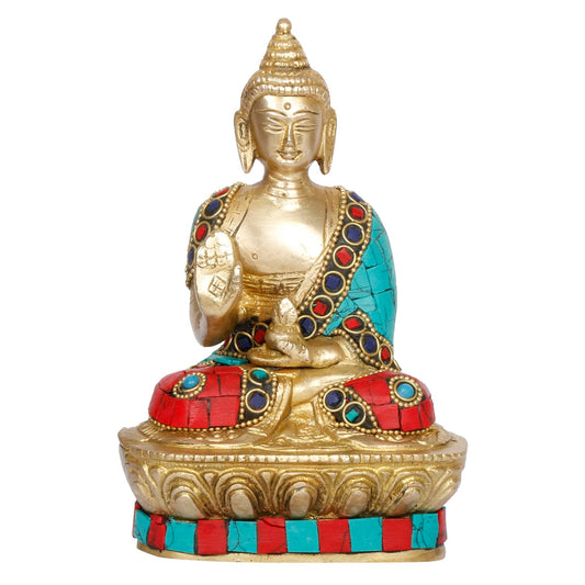 Brass Buddha Vitarka Mudra Idol Statue Tibetan Buddhist Decor Showpiece Height 6 Inch Multicolor
