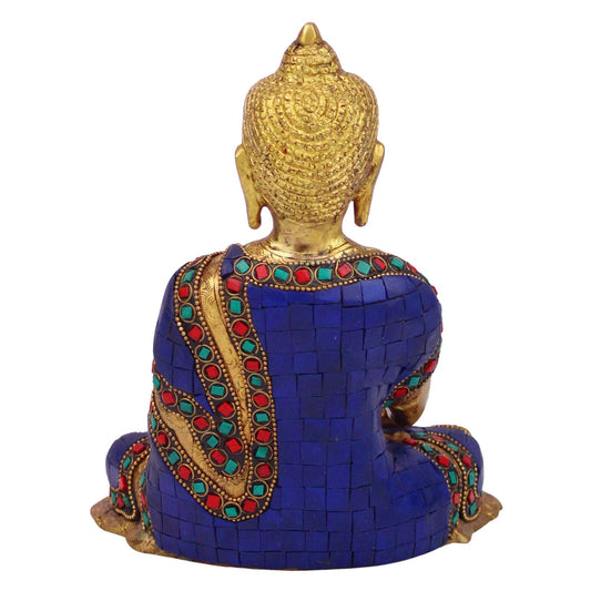 Brass Buddha Idol in Bhumisparsha Mudra Statue Tibetan Buddhist Décor Height 8 Inch Weight 2.3 Kg Color Multicolor