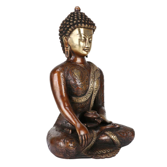 Brass Buddha Idol in Bhumisparsha Mudra Statue Tibetan Buddhist Décor Height 16 Inch Weight 9.5 Kg Color Bronze