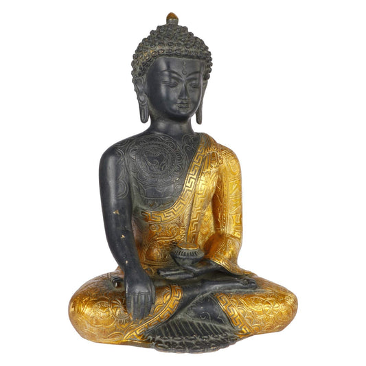 Brass Buddha Idol in Bhumisparsha Mudra Statue Tibetan Buddhist Décor Height 12 Inch Weight 6 Kg Color Golden Black