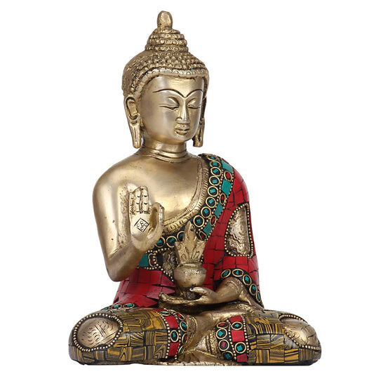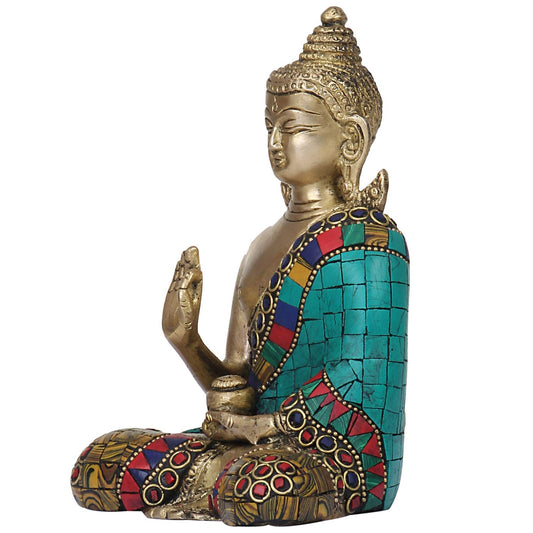 Brass Buddha Vitarka Mudra Idol Statue Tibetan Buddhist Décor Showpiece Height 7.5 Inch Weight 2 Kg Color Multicolor