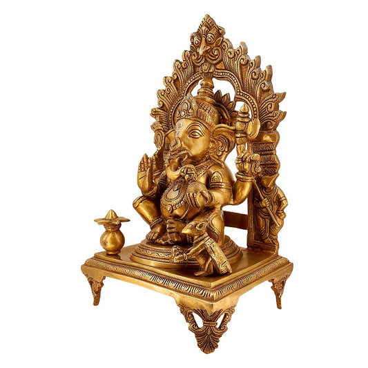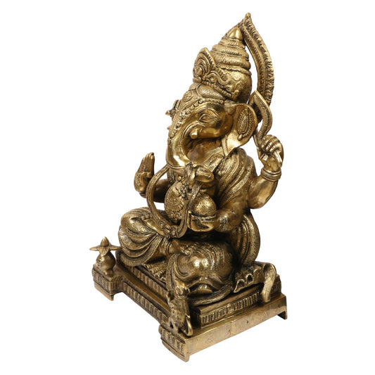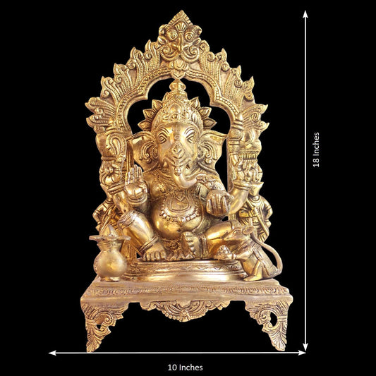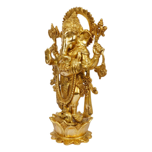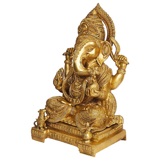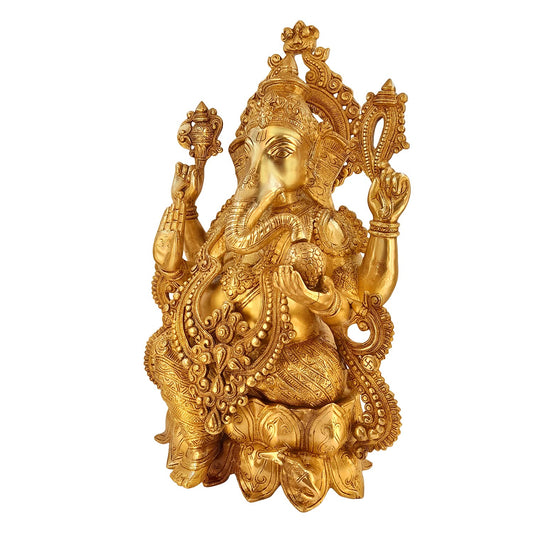 Brass Ganesha Idol for Home Decoration Ganpati Statue Murti for Gift Height 15.5 Inch Weight 8.35 Kg Color Gold