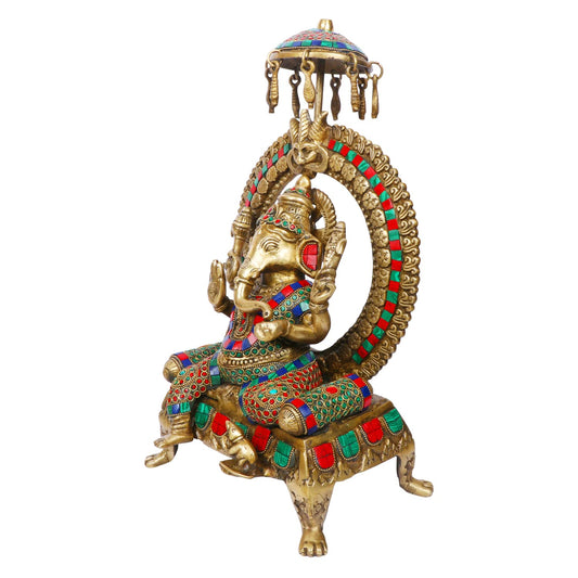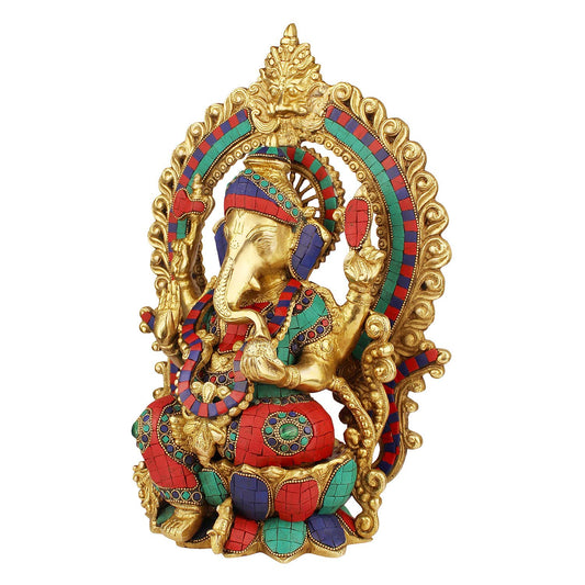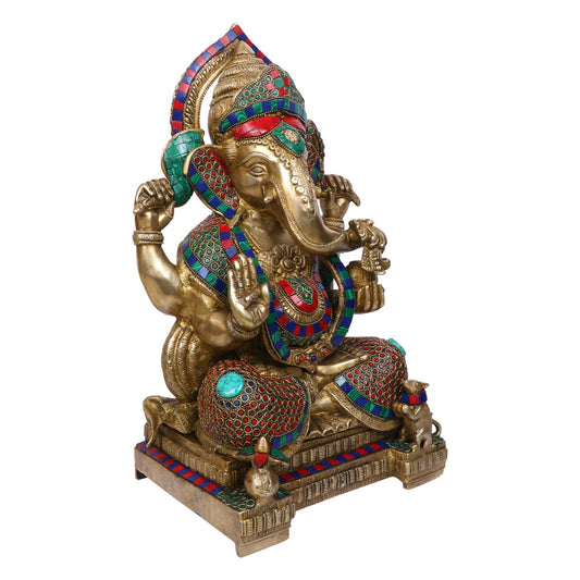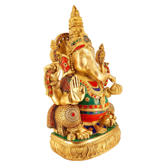 Brass Ganesha Idol for Home Decoration Ganpati Statue Murti for Gift Height 16 Inch Weight 13.8 Kg Color Multicolor