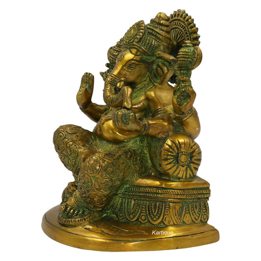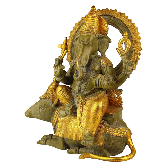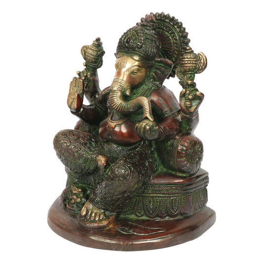 Brass Ganesha Idol for Home Decoration Ganpati Statue Murti for Gift Height 19 cm Weight 2.8 Kg Color Greenish Gold