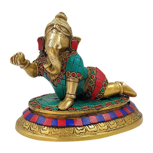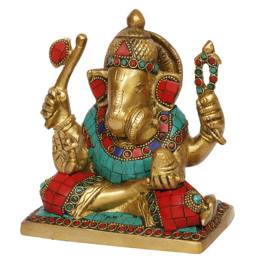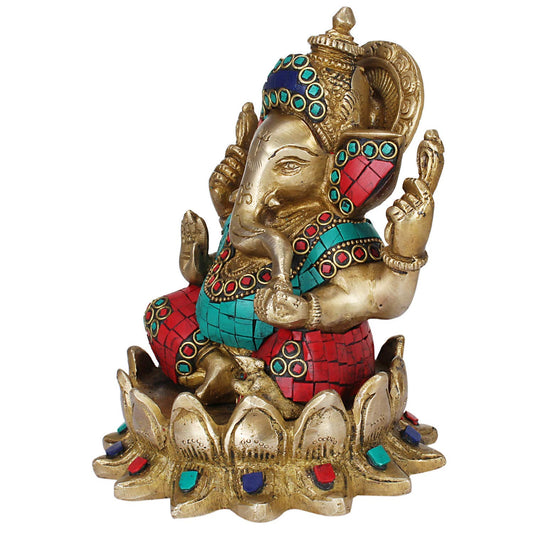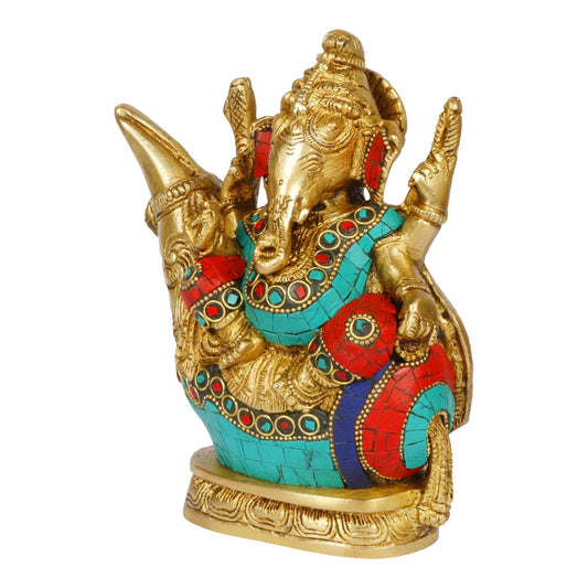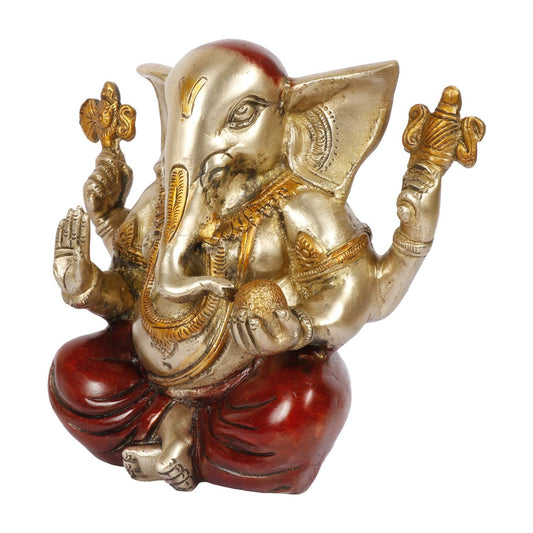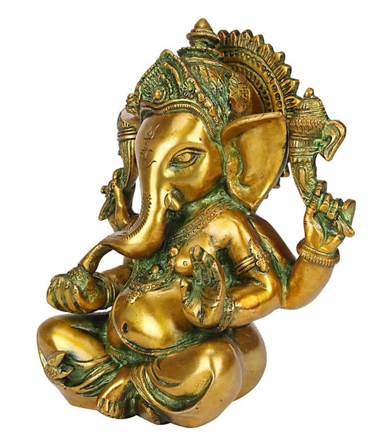 Brass Ganesha Idol for Home Decoration Ganpati Statue Murti for Gift Height 6 Inch Weight 1.9 Kg Color Multicolor