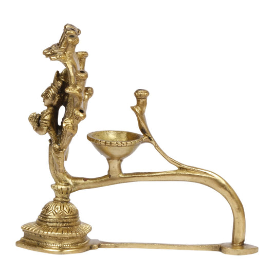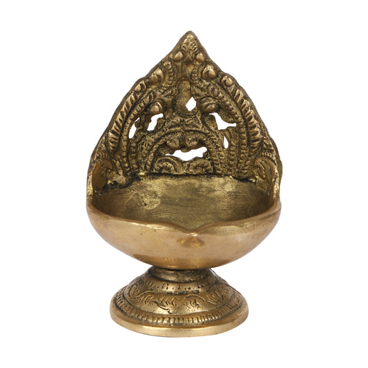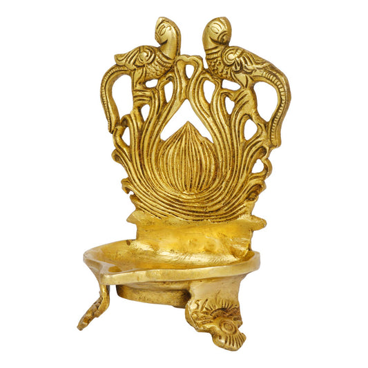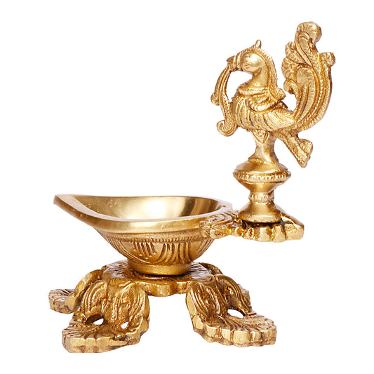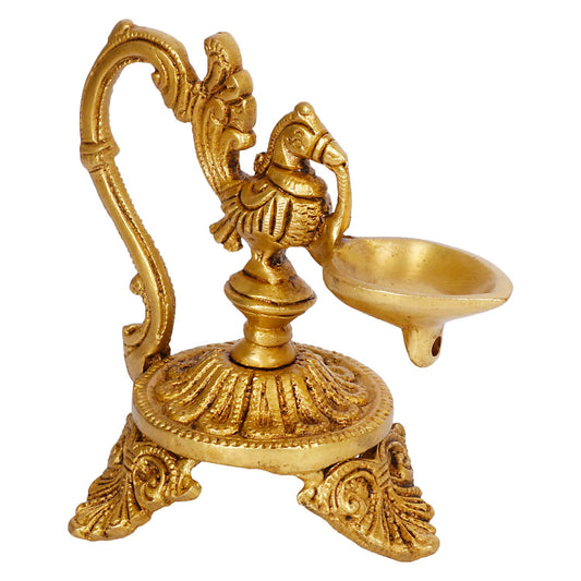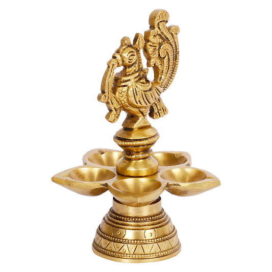 5.5 Inch Small Gold Color Brass Peacock Design Oil Diya with Base: Ideal for Home Temple Aarti and Decor