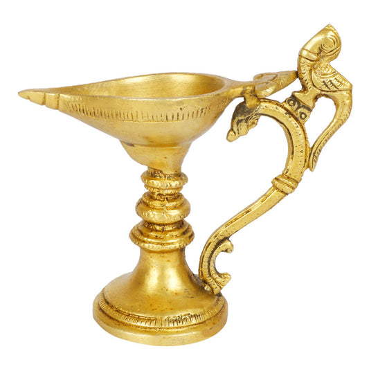 5 Inch Gold Color Brass Peacock Diya with Stand: Ideal for Pooja Room, Mandir, and Home Decoration
