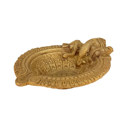 6 Inch Gold Color Brass Ganesha Face Diya: Ideal for Home Temple Aarti, Camphor Burning, and Table Mandir