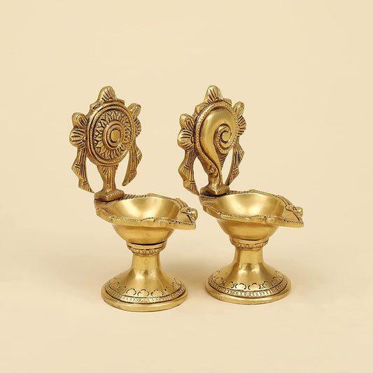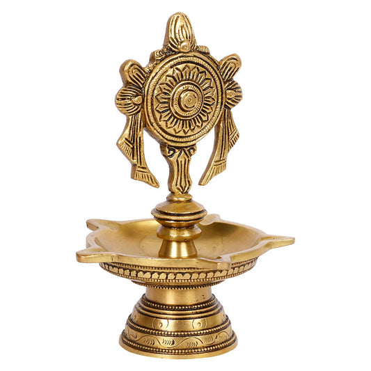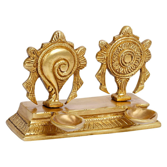 4.25 Inch Brass Shankh Chakra Diya: Gold Color Color