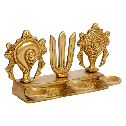 4.25 Inch Brass Shankh Chakra Namah Diya: Gold Color