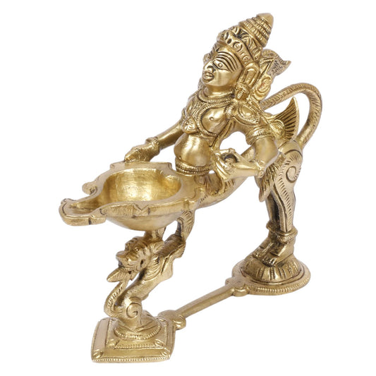 5.5 Inch Gold Color Brass Garuda Aarti Deepak with Handle: Can be used as Camphor Burner, Hand Held Arti Diya for Puja