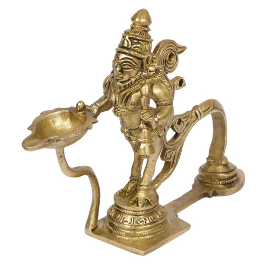 4.5 Inch Gold Color Brass Hanuman Ji Aarti Deepak with Handle: Can be used as Camphor Burner and Hand Held Arti Diya