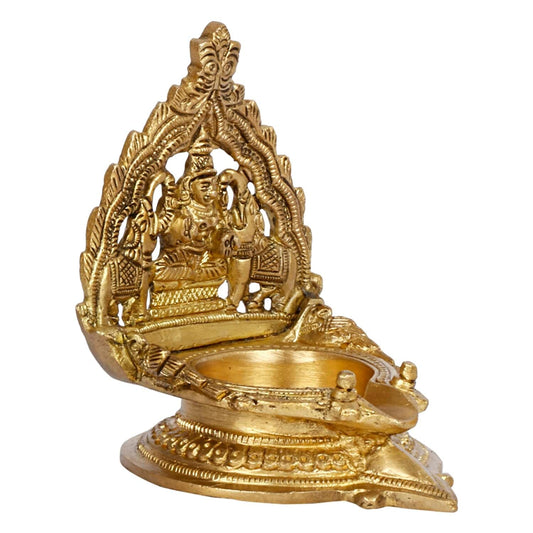 4 Inch Gold Color Brass Gajlaxmi Diya: A beautiful piece for religious and decorative use