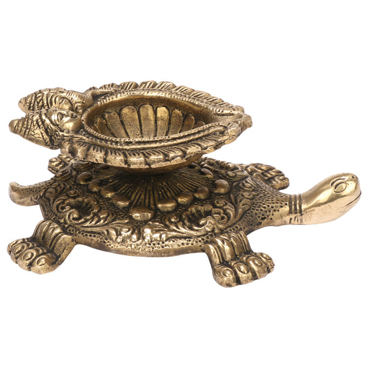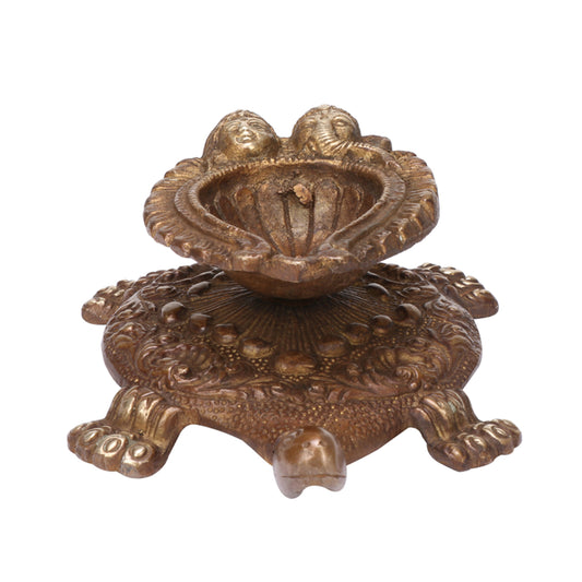 6 Inch Bronze Brass Diya Tortoise with Laxmi Ganesh Face: Vastu Kachua Designer Deepak Deepam, Home Decor