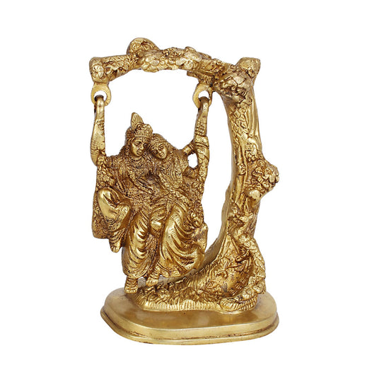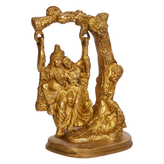 Brass Radha Krishna Murti on Jhula in Gold Color Height 6.5 Inch