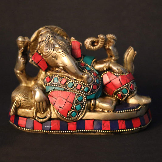 Brass Resting Ganesha Idol In Multicolor Height 3 Inch Weight 1.7 Kg