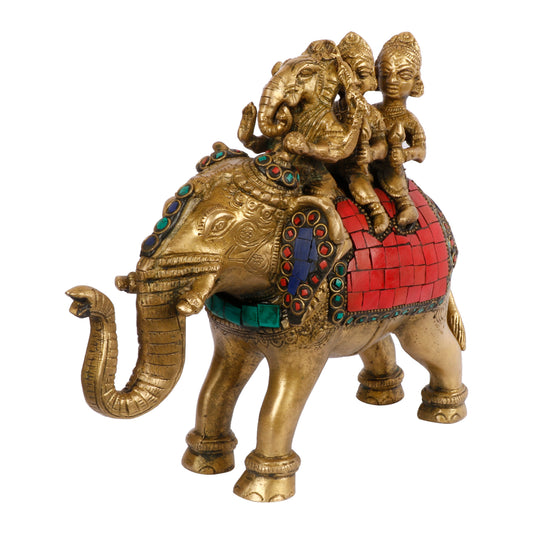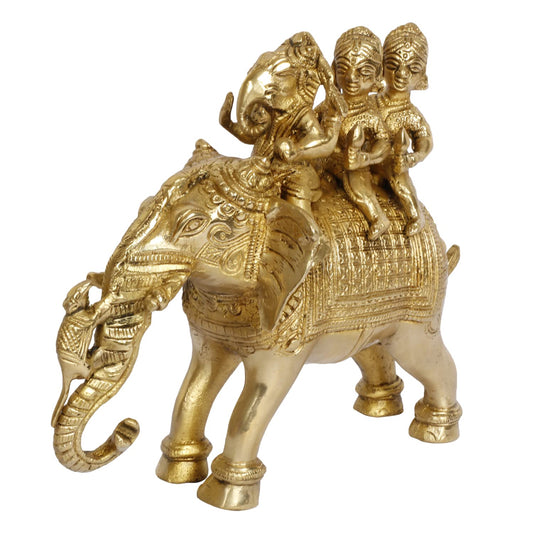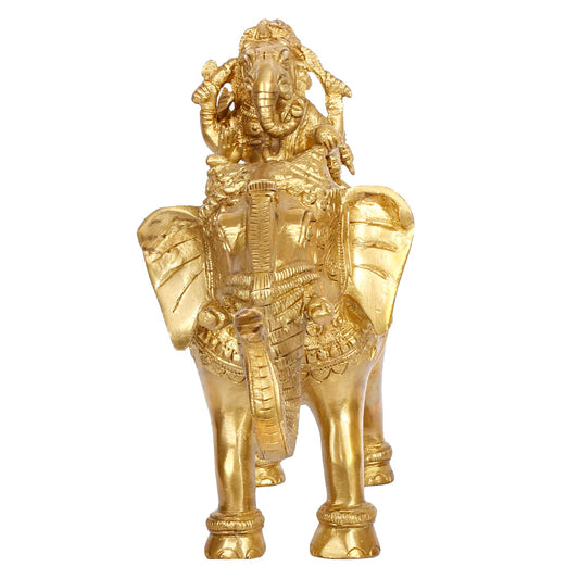 Brass Riddhi Siddhi Ganesha Ganesh Sitting on Elephant Idol Murti God Ganesha Vinayak Ganpati 8.5 Inch Gold Color
