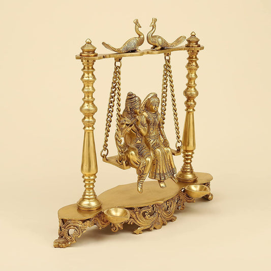 Brass Radha Krishna Jhula in Gold Color Height 13.5 Inch