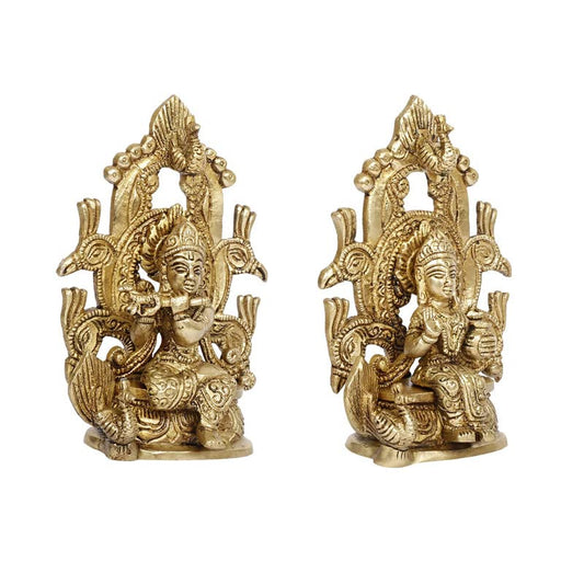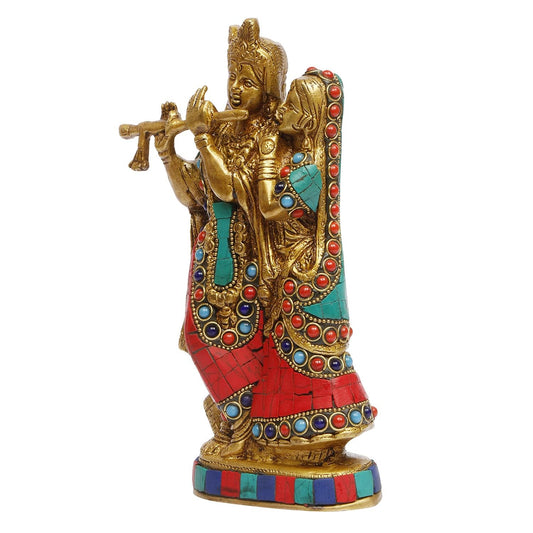 Brass Radha Krishna Idol Statue Playing Flute for Puja Mandir Radha Krishan Murti Sculpture Gift & Home Decor