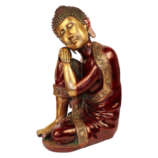 Brass Resting Buddha Statue with both Hands on Knee in Dreaming Meditation Height 16 Inch Weight 12.5 Kg Color Brown