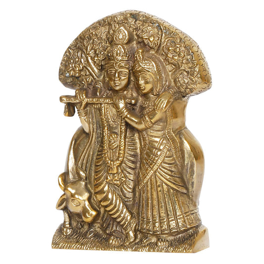 Brass Radha Krishna Under Kalpavriksha for Home Decor in Gold Color Heigh 6 Inch