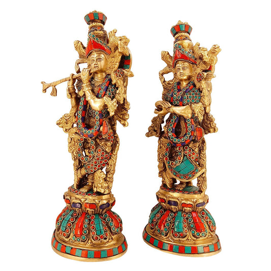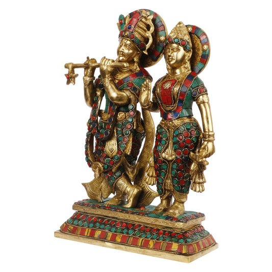 Brass Radha Krishna Murti Big Size Idol for Gift Height 12 Inch Weight 5.2 Kg Multicolor