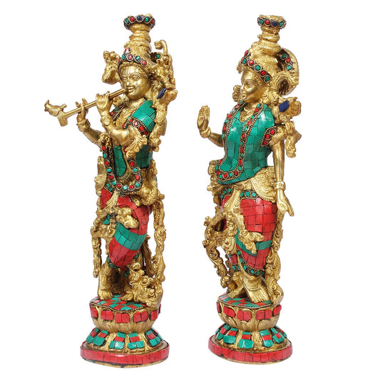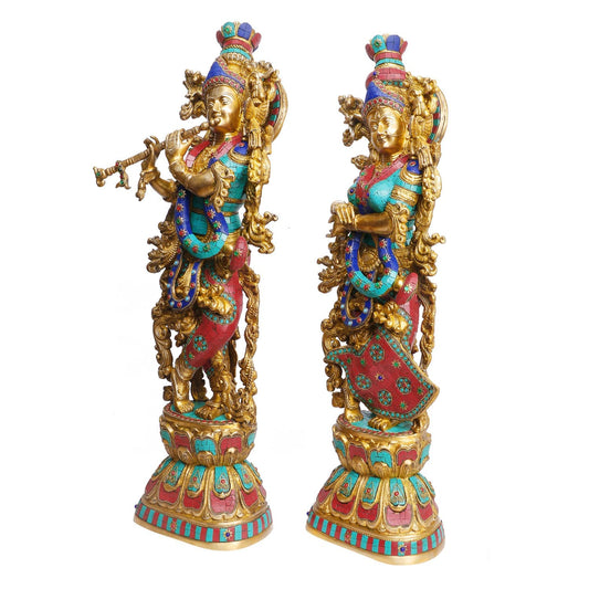 Brass Radha Krishna Murti Big Size Idol for Gift Height 29 Inch Weight 33 Kg Multicolor