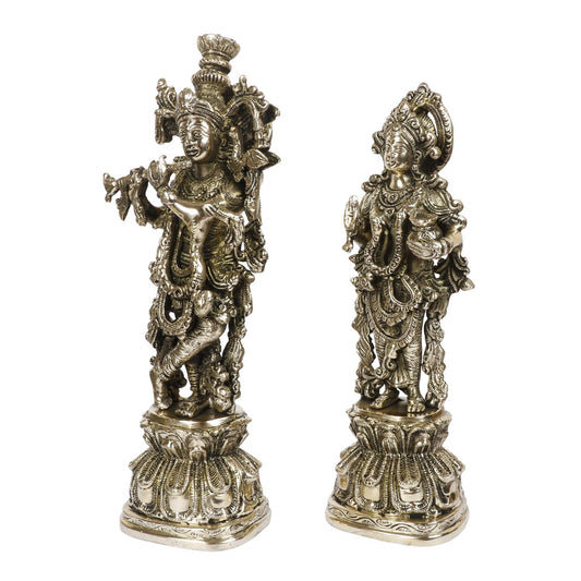 Brass Radha Krishna Murti Big Size Idol for Gift Height 13 Inch Weight 5 Kg Color Antique Gold