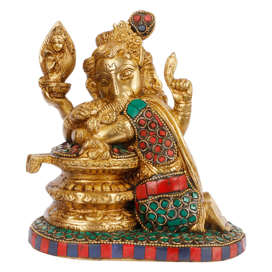 Brass Sitting Ganesha Idol In Multicolor Height 5 Inch Weight 1.3 Kg
