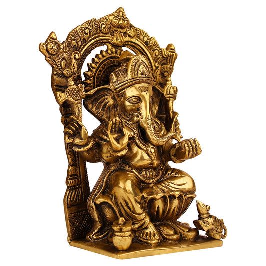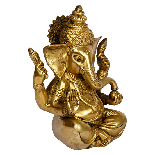 Brass Sitting Ganesha Idol In Gold Color Height 8 Inch Weight 1.1 Kg