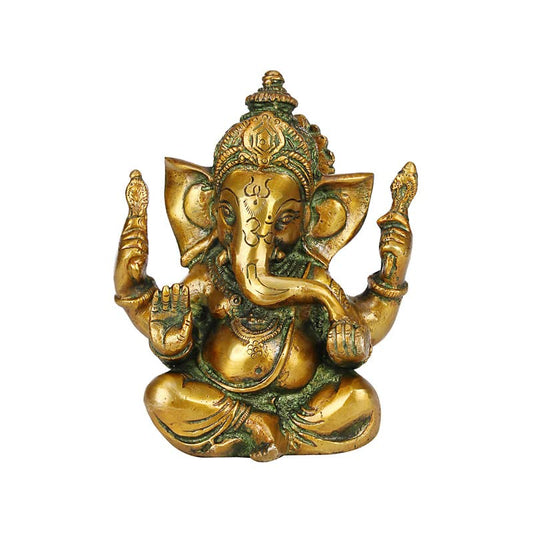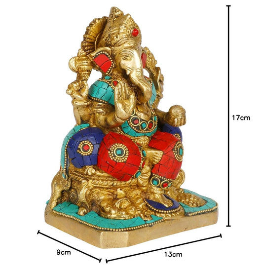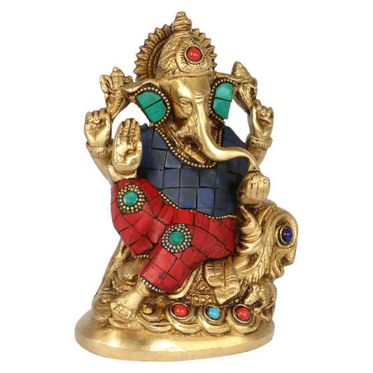 Brass Sitting Ganesha Idol In Multicolor Height 6 Inch Weight 0.99 Kg