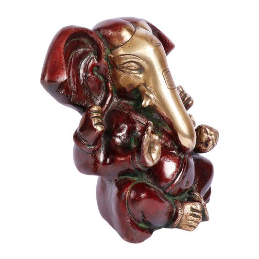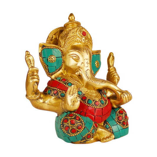 Brass Sitting Ganesha Idol In Multicolor Height 5 Inch Weight 1.05 Kg