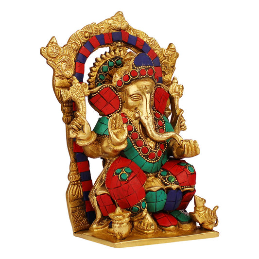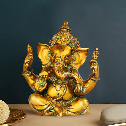 Brass Sitting Ganesha Idol In Multicolor Height 10 Inch Weight 2.5 Kg