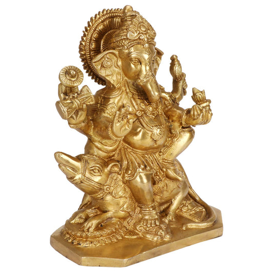 Brass Sitting Ganesha Idol In Gold Color Height 9 Inch Weight 2 Kg