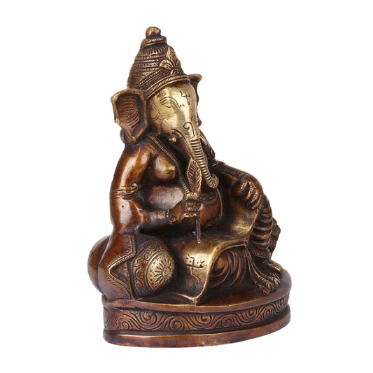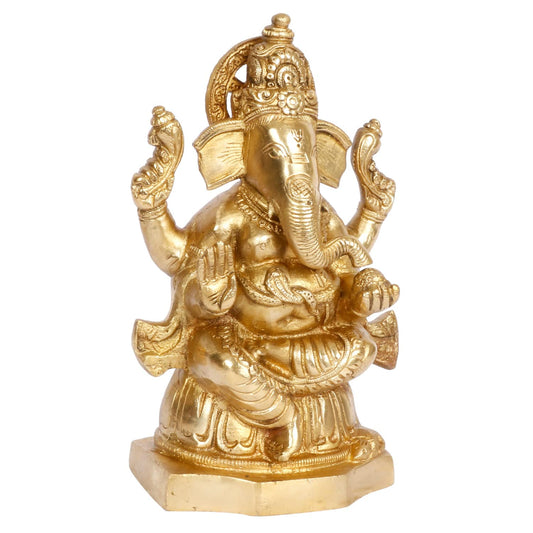 Brass Sitting Ganesha Idol In Gold Color Height 8.5 Inch Weight 2 Kg