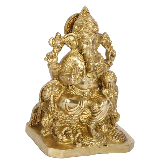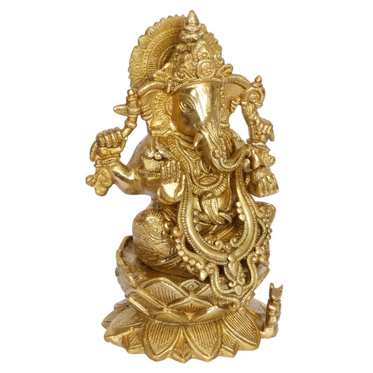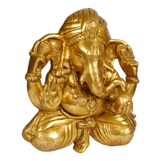 Brass Sitting Ganesha Idol In Gold Color Height 6.5 Inch Weight 1.75 Kg