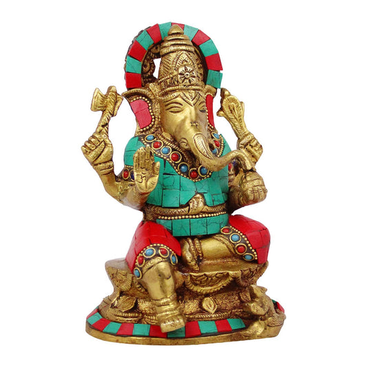 Brass Sitting Ganesha Idol In Multicolor Height 7 Inch Weight 1.65 Kg