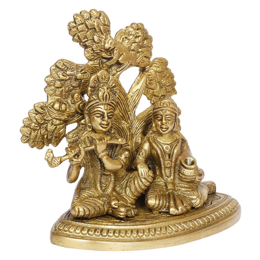 Radha Krishna Murti Under Tree in Gold Color Height 5.5 Inch