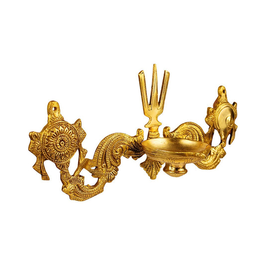 Inch6 Inch Brass Shankh Chakra Namah Diya: Vishnu Showpiece, Gold Color, Small