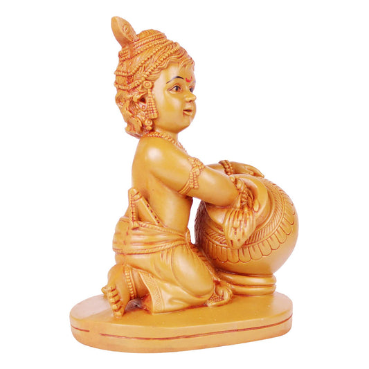 Resin Bal Gopal Makhan Chor Murti in Gold Color Height 7.5 Inch