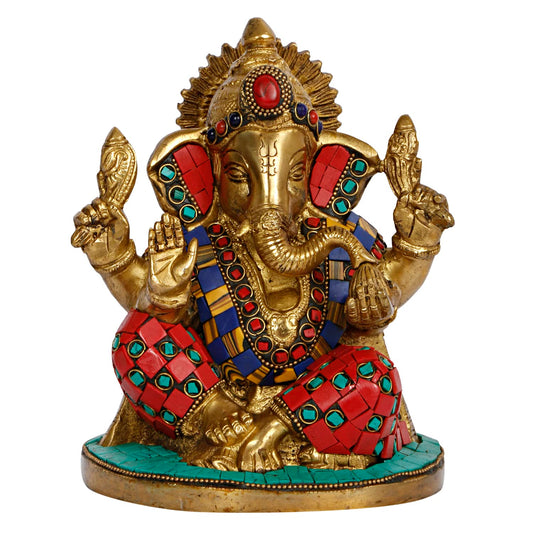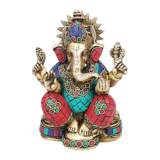 Multicolor Brass Ganesha Idol for Puja Room & Gift – 6.5 Inch
