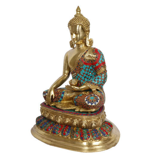 Lord Buddha Idol in Bhumisparsha Mudra Statue Tibetan Buddhist Décor Height 20 Inch Weight 18 Kg Color Multicolor