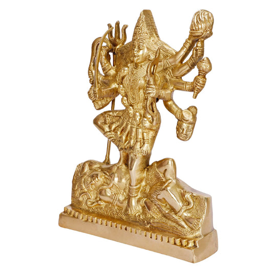 Kali Maa Murti Goddess Maha Kali Mahakali Kalika Maa Brass Statue Sculpture Idol Murti Decor Gold Color (Height 12 Inch)