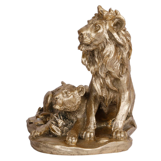 Heartwarming Lion Family In A Gold Color Resin Sculpture Height 7 Inch