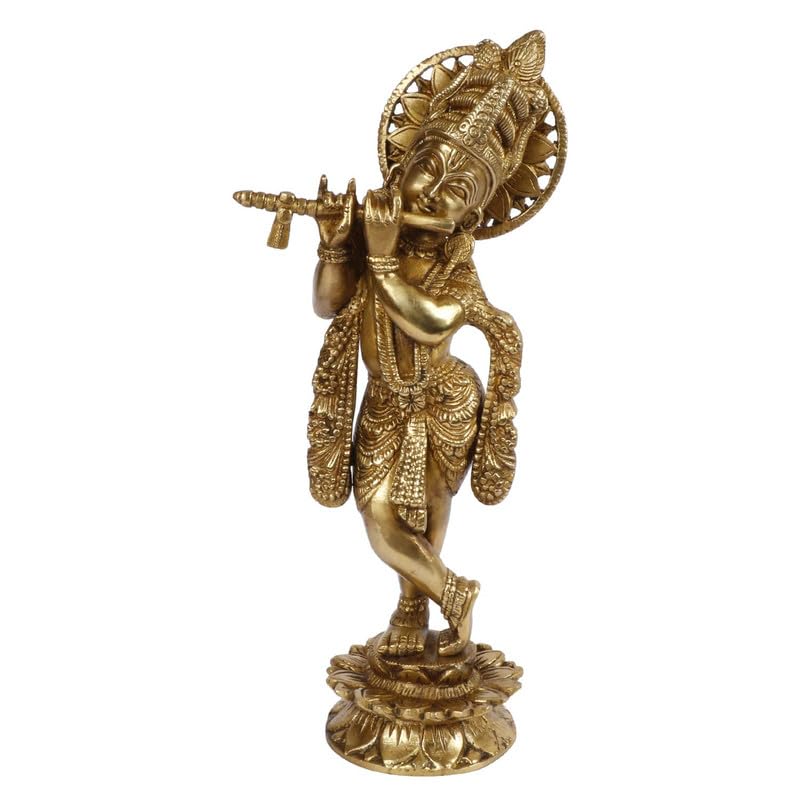- Representation of Lord Krishna's Love: This Brass Krishna Idol shows Lord Krishna, a key figure in Indian beliefs. He's known for his kindness and love and is very important in Indian culture.